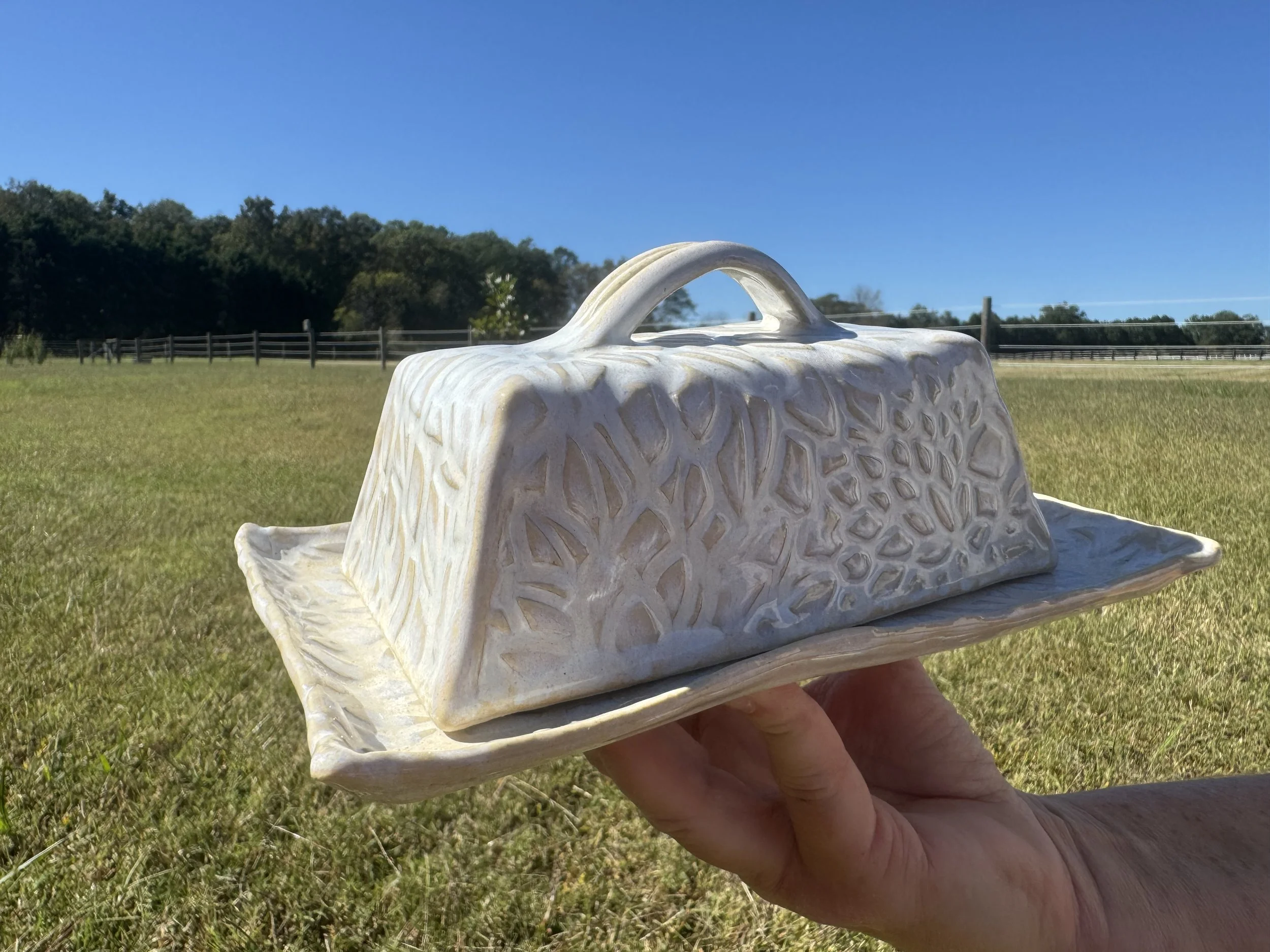 Welcome to my portfolio. Here is a collection of my favorite pieces. Feel free to use these as references for custom orders! White and Blue Soup Mug Brown Trimmed Chip n' Dip Red and White Mug White Butter Dish Amber Vase White and Blue Mug Horse Head Lidded Jar